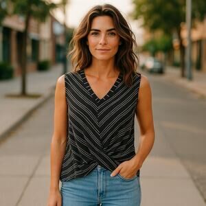 Soma Women's Draped Twist Front Tank Black White Braided Stripe Size XXL