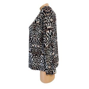 Soma Women's MEDIUM Blouse French Terry Lace-up Sweatshirt Mirrored Cat Taupe