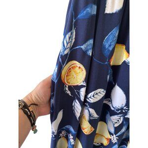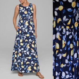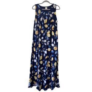 Soma Womens Navy Lemon Print Sleeveless Knit Maxi Dress With Side Pockets L