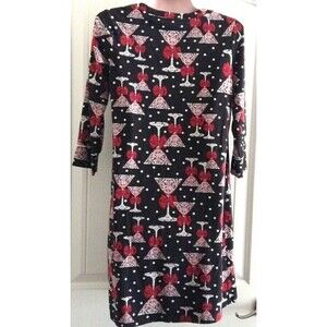 Soma Women's Night Shirt Nightgown XS Black Red White Martini Glass Polka Dots