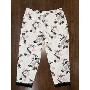 Soma Womens Pajama Pants L Floral Birdcage Print Lace Trim Lounge Sleepwear