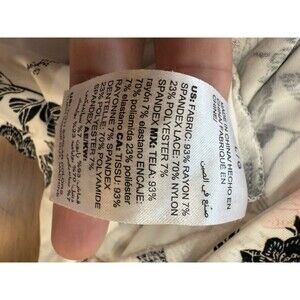 Material: 93% Rayon, 7% Spandex | Lace: 70% Nylon, 23% Polyester, 7% Spandex