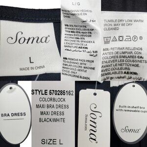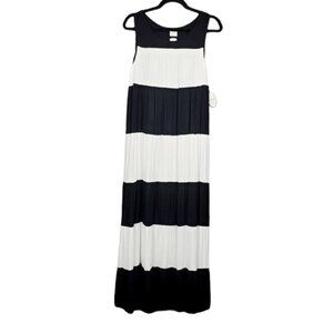 Soma Womens Sleeveless Black White Stripe Colorblock Maxi Bra Dress Size L NWT