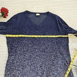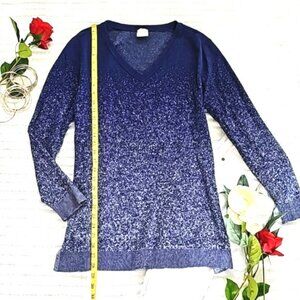 Soma Women's Sweater Size Large Blue Metallic Silver Ombre V Neck Evening Office