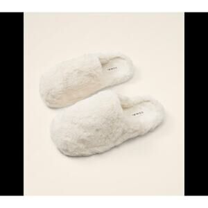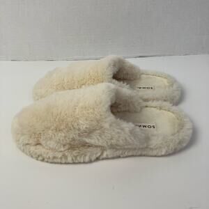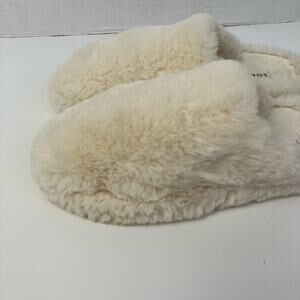 Soma Womens Sz 6/7 White Faux Fur Mule Slide Slipper Cozy Soft Comfortable