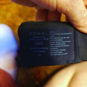 Soma black enbliss luxe wireless lace J hook bra 38C
