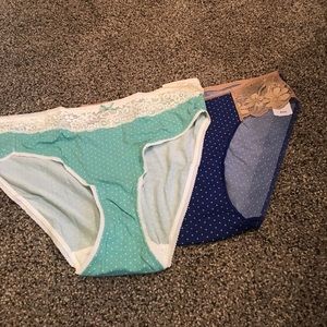 One hi leg little dot wasabi colored lace band ,one little dot majesty blue lace bikini cut.