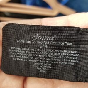 Soma vanishing 360 perfect coverage black lace trim bra black with black lace trim size 34b