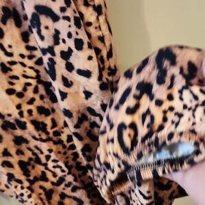 Chic leopard print design. Soft and cozy fabric. Perfect for lounging. jogger hem