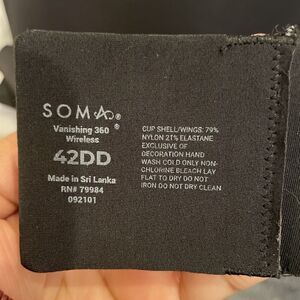 Soma Womens Wireless Bra 42DD Black Vanishing 360 Back Adjustable Strap