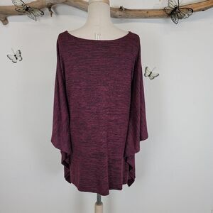 A lightweight slubbed texture that drapes perfectly and feels luxurious makes this poncho perfect for lounge wear. Scarf hem.Poncho styling with armholes.Long sleeves.Asymmetric point at hem. Oversized fit. Gently preloved condition. Any flaws are noted. Size is S/M