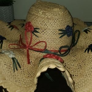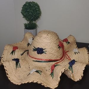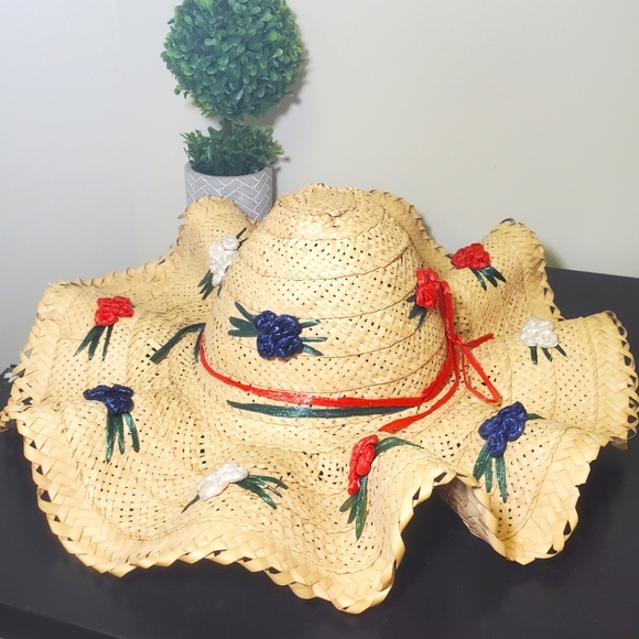 Vintage Super cute straw hat! Very well made! Has some broken pieces at the end but overall it's still in great condition and can't wait to be worn out on a sunny day to the beach or to the pool 😎 Please see photos for complete item description and condition 💙 Fast shipper and will package with care.