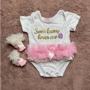 Some Bunny Loves Me Easter Tutu Onesie and Matching socks size 6-9mo