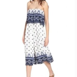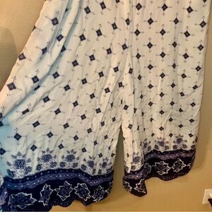 Some Days Lovin Jumpsuit Large White Blue Geometric & Floral Patterns Flowy Boho