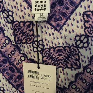 New with tags! Short sleeve lavender print crop top with draped back and adjustable strap. Size medium but fits M-L. Heavy matte satin fabric. So pretty!