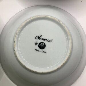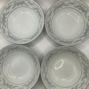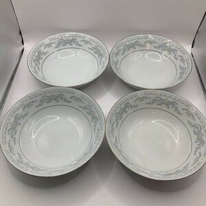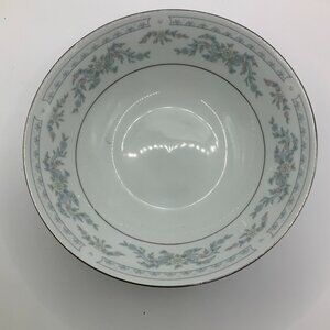 Somerset Blue, Pink & Green Flowers w/Blue Ribbon Silver Trimmed Bowl