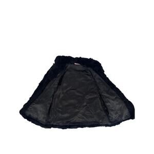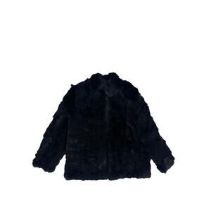 Black 100% real Rabbit Fur coat. Lining is made of Acetate Satin. Square shoulders with a loose fitting hang. Needs to be professionally cleaned if necessary. No pockets, No buttons. No flaws.