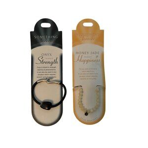 Something Forever Onyx & Honey Jade Crystal Bracelet Set – Strength & Happiness NEW