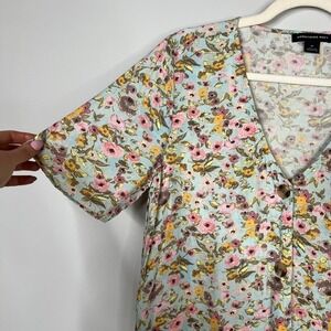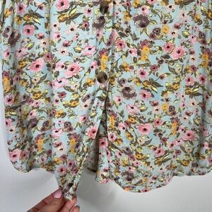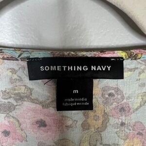 Something Navy Arielle Charnas Floral Button Front Tie Front Blouse Top Size Med