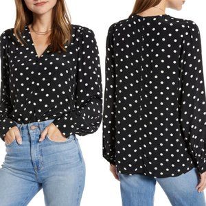 Something Navy Balloon Sleeve Button Front Career Zoom Blouse XS NWT