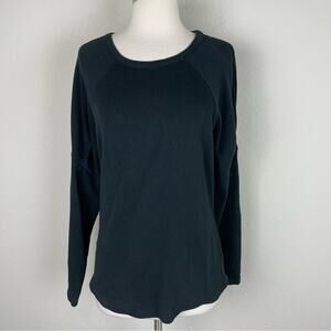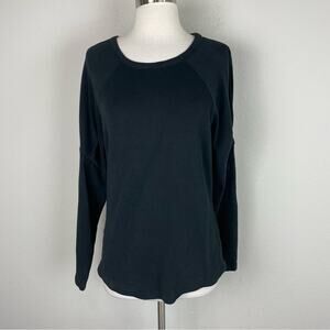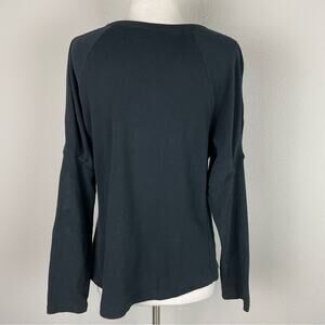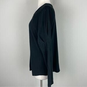 Something Navy Black Cotton Spandex Knit Puff Sleeve Top Large