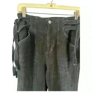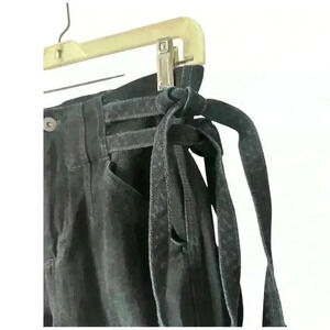 Something Navy Black High-Waisted Tie Pants Size 2 99% Cotton Trendy Tapered Fit
