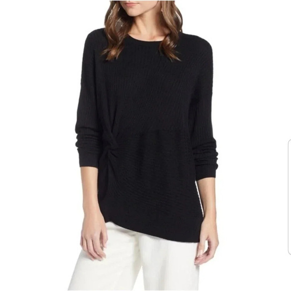 Something Navy Black Ribbed Knotted Oversized Sweater XS