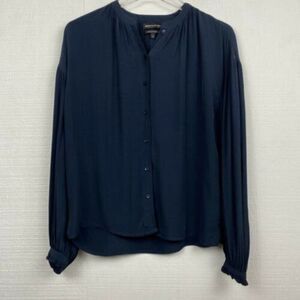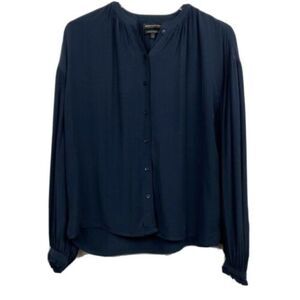Something Navy Blouse XXS Womens Navy Blue Easy Volume Button Front Oversized Viscose