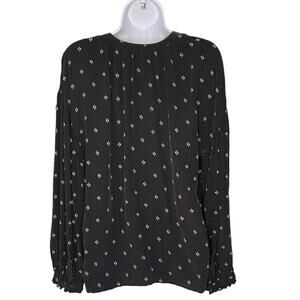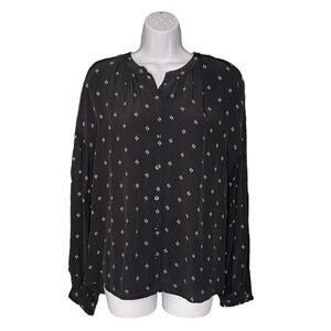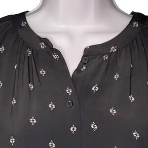 Something Navy Blouse Rayon Button Down Black Floral Large