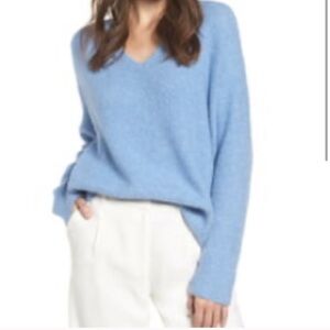 Something Navy Blue Oversized V-Neck Knit Sweater