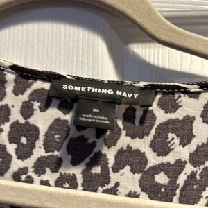 Gently worn Something Navy Button Front Leopard Dress women’s size M. 100% viscose, tan with black leopard print, v-neckline, buttons up front, darted at waist, short sleeves with pleated puff at shoulders, hits above knees. Offers accepted!