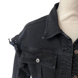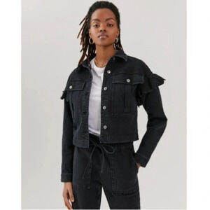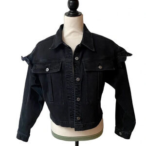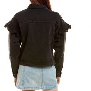 Something Navy Celeste Black Cropped Denim Jacket Ruffle Eyelet Detail Size S