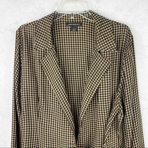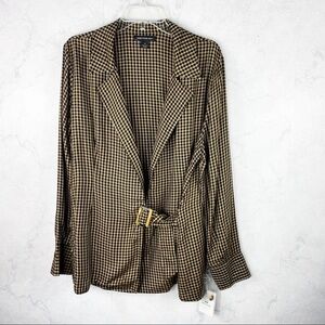 Something Navy Checkered Plaid Blazer Shirt. Adjustable Belt. Waist Wrap Details. Collar. Quality Soft Material. Loose & Lightweight. NWT/ New With Tags. Great Condition. No Stains or Rips.