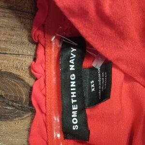 Something Navy Coral Orange Puff Shoulder Cropped Fitted Button Down Blouse QQQ