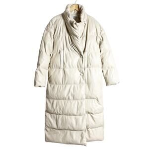 Something Navy Cream Faux Leather Maxi Trench Puffer Coat Size Small