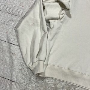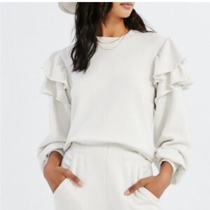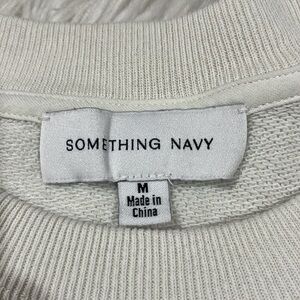 Something Navy cream colored ruffle trim shoulder crewneck sweatshirt. This sweatshirt is in great used condition