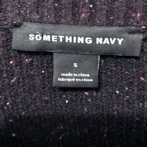 Something Navy dark brown with little color accent flecks crew neck sweater .