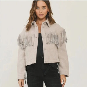 Something Navy Delphine Wool Fringe Jacket Coat S Tan