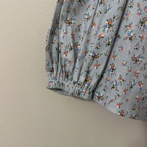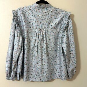 Something Navy Ditsy Floral Ruffle Button Down Shirt Sz Small Cottagecore Prairie Preppy Farmhouse Shabby Chic