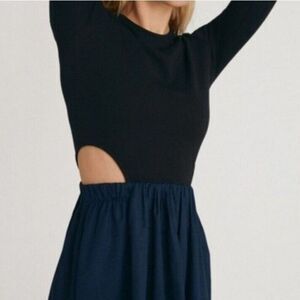 Something Navy Dress Small Black Blue Tara Cut Out Long Sleeve Maxi Evening