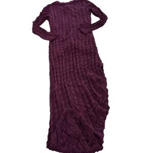 Red Purple knit (65% Viscose, 35% Nylon). Sheath. Long sleeves. Mock neck. Back zipper closure. 58" from shoulder to hemline. Imported.