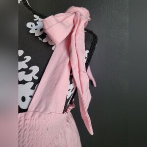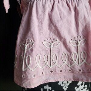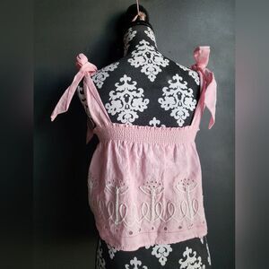 Something Navy Embroidered Tie Strap Top in Pink White Sz S