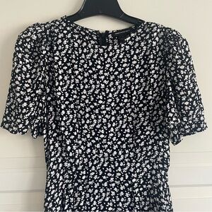 The dainty blooms patterning this midi hold their own with the swingy, strong-shouldered cut, delightfully defining a dress destined to be a wardrobe classic.