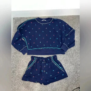 Something Navy Hazel Floral Paperbag Sweatshorts In Navy small