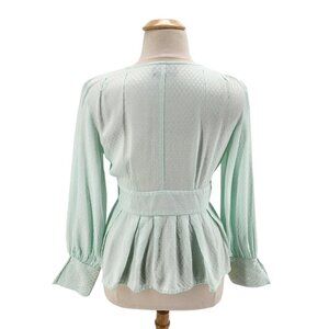 Description: Something Navy Jacquard Wrap Surplice Peplum Mint Green Blouse Top Women's Size 1X - Something Navy Size 1