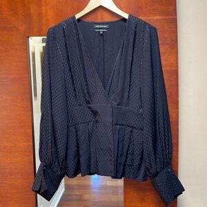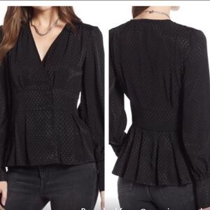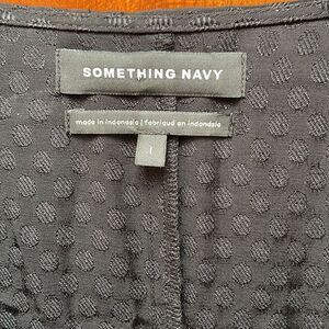 Something Navy Black Dots Jacquard Peplum Balloon Sleeve Blouse Size Large. Pristine condition. Please note I included the picture of the light gray so you can see the style and more detail. Enjoy!