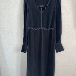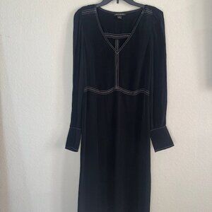 Something Navy Midi Dress Sizes M Womans Black Long Sleeve Side Button V-Neck