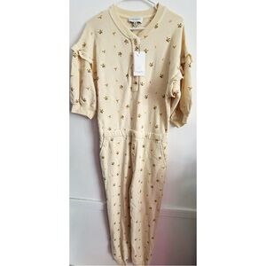 Something Navy • NWT Esmerelda Yellow Jumpsuit with Floral Pattern