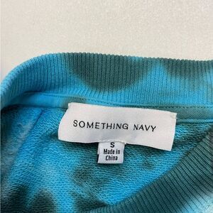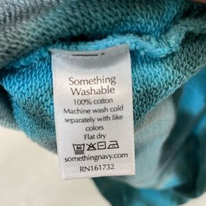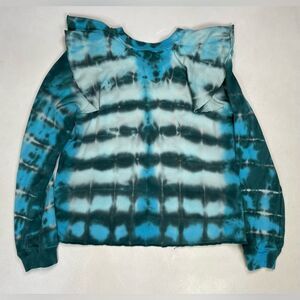 Something Navy Neghan Ruffle Shoulder Sweatshirt Women Small Blue Green Tie Dye