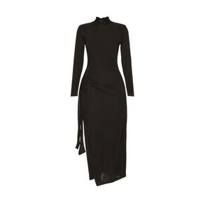 Black jersey (93% Viscose, 7% Nylon). Sheath. Long sleeves.